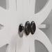 Made of high grade MDF with wood veneer for top and pine wood for frame and legs, the cabinet is highly durable with heightened stability. Two doors with antique pull knob, make it easy to open and close the door.