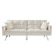 Modern Velvet Sofa Couch Bed with Armrests and 2 Pillows for Living Room and Bedroom .(White)