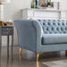 • Premium quality velvet upholstery • Timeless button tufting • Clean lines and softness create a look that fits a traditional or contemporary interior decor