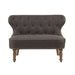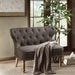 Elevate your living room decor with the sophisticated style of the Madison Park Stanford Settee. Featuring an elegant button-tufted back, this settee is upholstered in a charcoal fabric with a pewter nailhead trim for a chic transitional look. Solid wood legs provide a sturdy base and perfectly complement the upholstery. Add a unique and eye-catching style to your home by incorporating this settee into your living space. Leg assembly required.