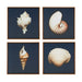 Ocean Seashells is a dynamic 4-piece 12" x 12" framed set. The set shows 4 different realistic seashells against a lush navy background.
