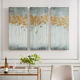 View full detailsGrey Forest is a triptych set will add style and sophistication to your living room. The set incorporates a beautiful blues and grays with hand app...