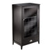 Bordeaux Modular Wine Cabinet 25-Bottle Slot is a great addition to your home. The simple design has straight lines and a dark finish. Perfect storage piece for the wine enthusiast. The cabinet provides spacious single drawer for your accessories, storage shelf and 25 slots for your wine bottles. Create a wine storage system with additional units and sit side by side.  Glass door opens to shelf and slots wine rack; add units to create a complete storage system.Overall assembled size is 22.6"W x 15.75"D x 40"H. Cabinet is made with combination of solid and composite wood in espresso finish. Assembly Required.