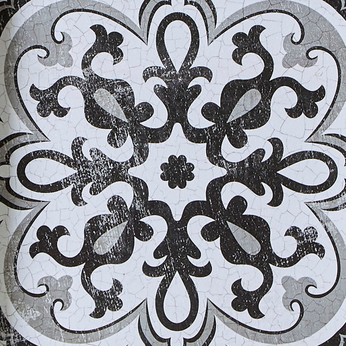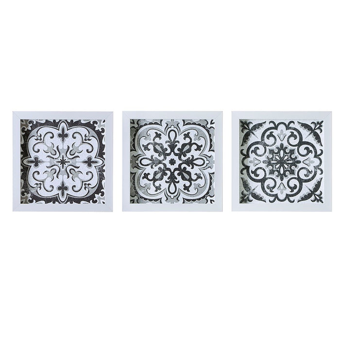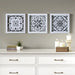 The Madison Park Black and White Tiles Framed Gel Coated Distressed Paper 3 Piece Set brings a bold and elegant touch to your home decor. Each decor box features an intricate medallion design in black and white hues, for a brilliant contrasting look. A gel coating provides a clear glossy protective layer to protect the colors from fading. Beautifully designed, this three piece wall art set is easy to hang together or separately to accent your space with transitional flair.