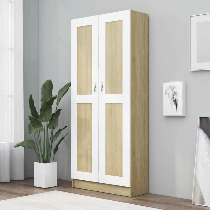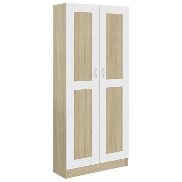 Book Cabinet White and Sonoma Oak 32.5"x12"x73" Chipboard