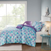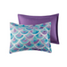 Fun and vibrant, the Mi Zone Pearl Metallic Printed Reversible Comforter Set is sure to brighten your bedroom décor. The reversible comforter features a silver metallic fish scale print over a purple, teal, and blue print fabric that flips to a solid purple on the reverse, for an enchanting look. The 2 matching shams (1 for Twin/Twin XL) mirror the design of the comforter, while an oblong decorative pillow adds texture and dimension for a perfect finishing touch. Hypoallergenic polyester filling in the comforter and decorative pillow provides exceptional warmth and comfort. Machine washable for easy care, this metallic print reversible comforter set brings a delightfully eye-catching allure to any bedroom. This bedding set uses an antimicrobial treatment that provides built-in freshness protection, reducing the growth of odor causing bacteria to keep fabric lasting longer.