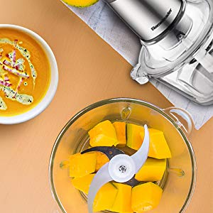 [TIME SAVER] Much faster than cutting by hand; chop onions, slice salad ingredients, meats, mix sauces or puree soups, etc just in seconds. Choose different speed for fine, normal and coarse grinding to meet your need- fast speed for meats, nuts, carrots; slow speed for eggs, vegetables, fruits, etc. [POWERFUL ENOUGH] 4 detachable stainless steel blades allows the upper and lower blades to chop food evenly. Chop vegetables in 6 seconds and chop meats in 8 seconds, making an indispensible helper in your kitchen when having friends gathering or family reunion. [SATISFY HOME NEED] 8 cup big capacity satisfies your home need - making mashed potatoes for babies, milkshake for friends, dumpling filling for family party. Great food processor is easy to operate for chopping and mincing what you like, pressing the head to start any chopping task. [USER-FRIENDLY DESIGN] : 2L Glass bowl for easy cleanup; non-slip rubber ring for stable operation; rubber sealing ring - free from splashing; two easy and comfortable grips for portable movements; higher power but lower noise-less than 40db; it won't take up space in your kitchen. [CERTIFICATION & WARRANTY] Customer service responds within 24 hours; provide 30-day full refund; 12 months replacements warranty for all parts of the food chopper and lifetime support guarantee; FDA approved and CE certified.