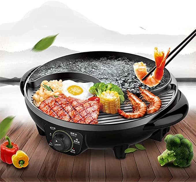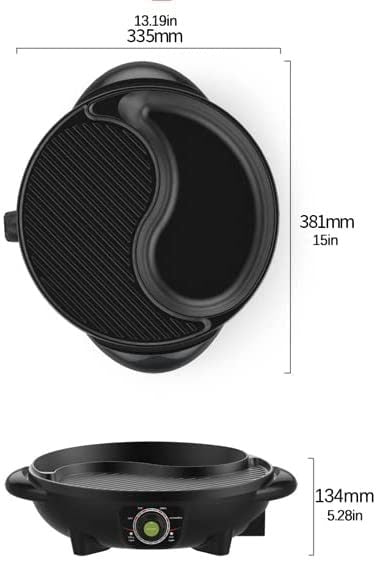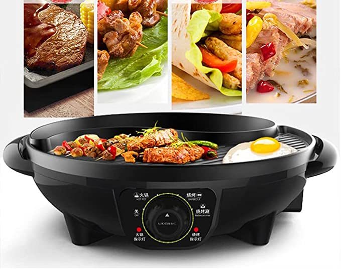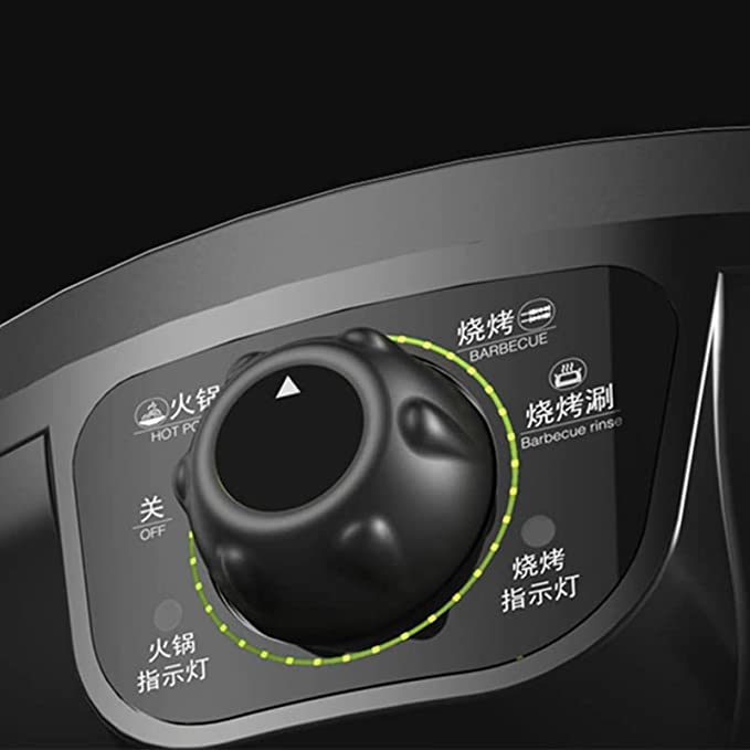 Control: Separately control pot and BBQ, with temperature control making cooking more easy.It is a normal phenomenon that the product smells at the first use, because the gas in the pipe is discharged after being energized, which is the smell of the circuit components inside, but after a few times of usation, there is no smell. It is recommended that the customer first heat it without food and clean it with detergent.