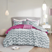 - Bright and inviting comforter set features grey chevron print broken up on white vertical stripe