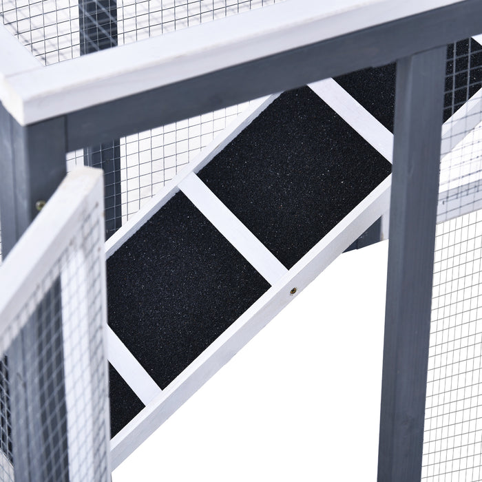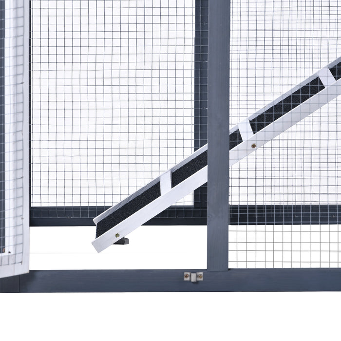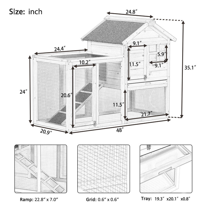 Overall dimensions: 48"x24.8"x35.1"(LXWXH) Ramp Size (L x W): 22.8"X7.0' Each Wire Grid Size: about 0.6"x0.6" Tray size:19.3x20.1x0.8inch Cover Square:8.3 sq.ft