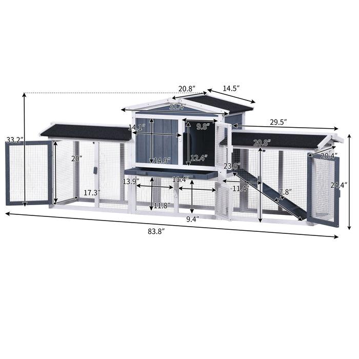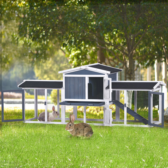 Two outdoor enclosures gives rabbits capacious and comfortable outdoor home