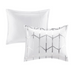Freshen up your bedroom with the enchanting style of Intelligent Design’s Raina Metallic Printed Comforter Set. The stunning comforter flaunts a geometric, metallic silver print against a dark navy ground for a fun and eye-catching look! Matching sham(s) echo the design seen on top of the bed to pull the entire ensemble together. Two embroidered decorative pillows with typography and metallic details complete this fabulous, ultra-soft microfiber comforter set. Set includes comforter, 2 shams (1 sham in Twin/TwinXL), 1 oblong and 1 square decorative pillows. This bedding set uses an antimicrobial treatment that provides built-in freshness protection, reducing the growth of odor causing bacteria to keep fabric lasting longer. Items in the set may come in a rolled or compressed packaging, which will need to be fluffed up or steam ironed before use to remove wrinkles.