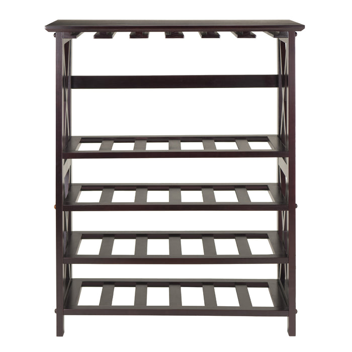 Rio wine Rack and Bar adds dining space and storage to your kitchen or dining room. This sturdy wine rack able to accommodate up to 24 bottles and wine glasses. The simple style blends with X legs is great for kitchen or game room.