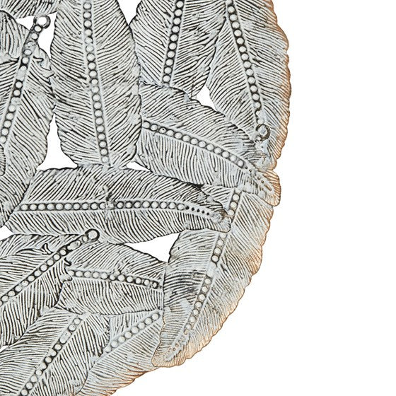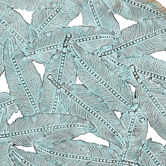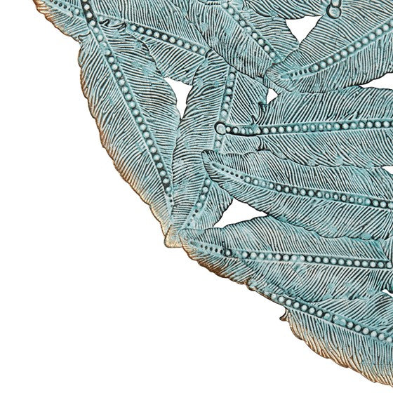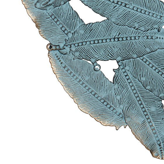 Line your walls with the Madison Park Wall Decor 3 Piece Set. Painted with a beautiful blue hued iron finish, this wall decor set offers a splash of color to any room. The feather cutout design is made of a 100% metal material and features attached hook rings on each piece to easily mount on your wall. Available in a set of three, this alternative metal wall decor can be hung together to bring life to any bare wall or hang separately for a little pop throughout your room or home.