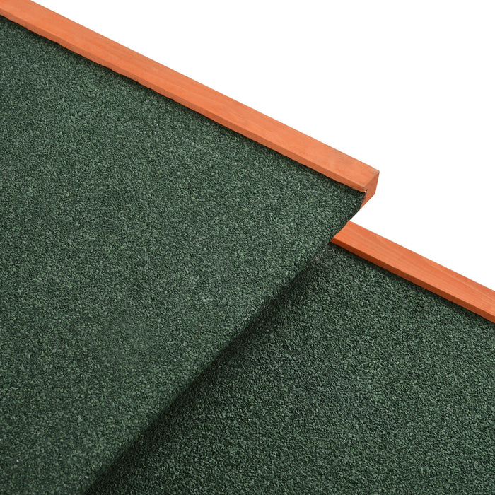 Green asphalt roof and Orange wood color is a great scenery in your garden Contains two runs on each side of the main house, Spacious running areas
